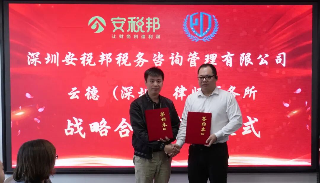 2024年11月29日,安税邦财税和云德(深圳)律师事务所签订战略投资合作协议,双方代表为安税邦集团董事长邓玉凌,云德(深圳)律师事务所赵晓川主任。这一举措为双方开启了新的发展篇章,也为客户带来更全面、更优质的服务体验。